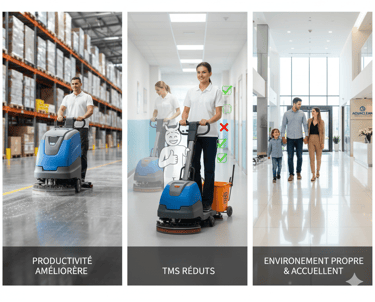 Nous fournissons des autolaveuses professionnelles pour améliorer la productivité, réduire les TMS et garantir un environnement propre et accueillant pour vos clients.